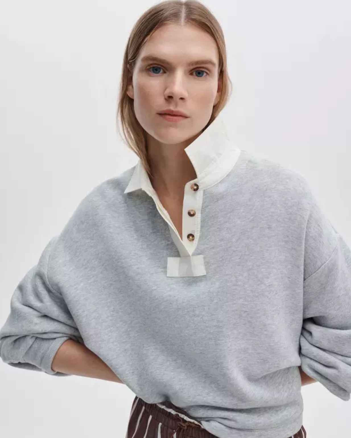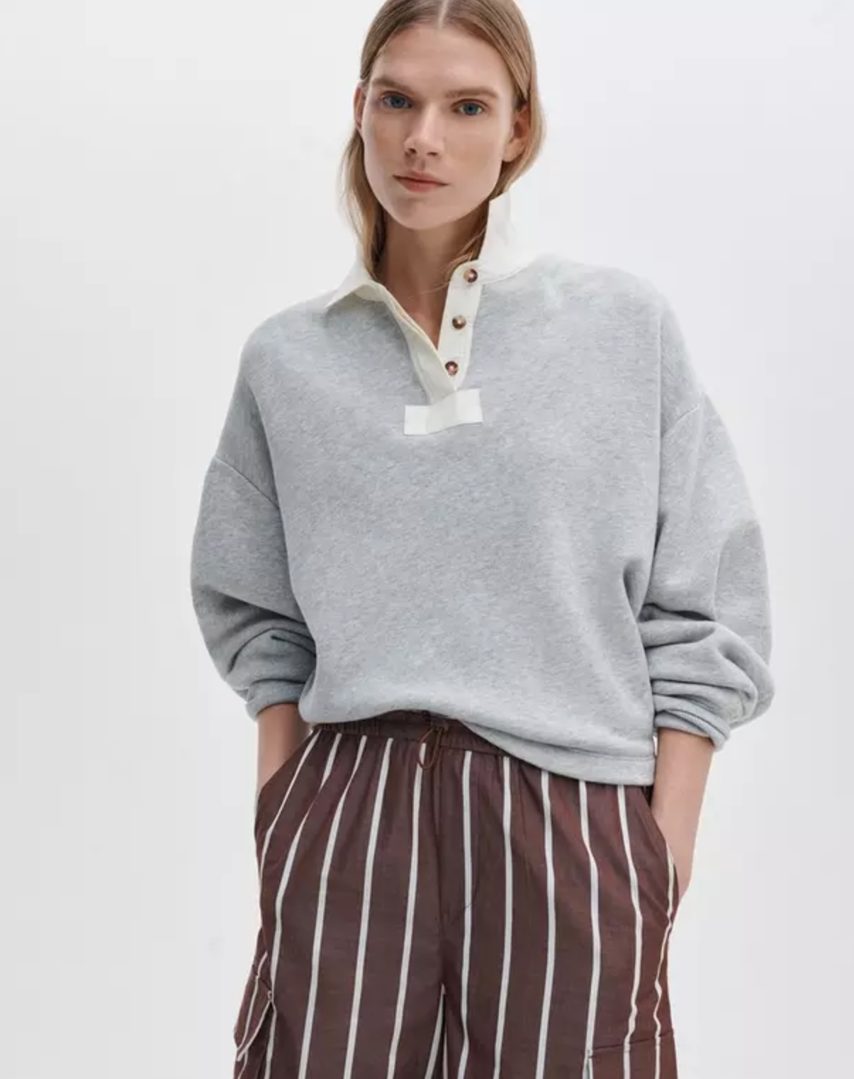 Vintage Terry Oversized Polo Sweatshirt Heather Grey