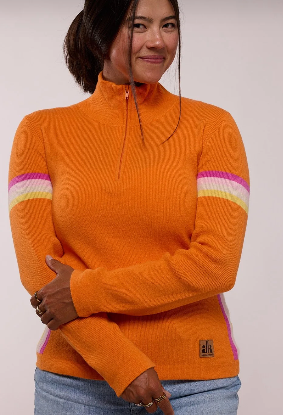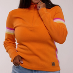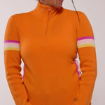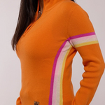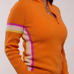 Alpine Revival’s modern take on the classic Zipneck ski sweater. The Powder Day Zip is a 100% cashmere blend promising you warmth and durability for all your days on and off the mountain. It combines a bright, bold color palette with a feminine silhouette.