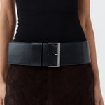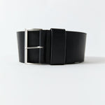 The Wide Classic Belt offers versatile styling with its bold silhouette and brushed silver rectangular buckle. A statement accessory that adds structure and definition, it effortlessly elevates any outfit.