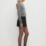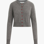 The best-selling Rebecca Cardigan, cropped. Made from the softest cashmere in a wear-with-everything length and a classic fit. It's a favorite in charcoal grey with red buttons. Make it a set with The Rebecca Cami or toss over your shoulders with pretty much anything.