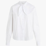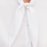 It’s giving French girl. A classic poplin shirt with a self-tie neck, button front, and an easy, in-between fit.