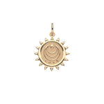 This is a limited edition version of the Original Love Coin, made in a smaller size and accented with White Enamel and Rainbow Moonstones.
