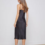 A body-skimming slip dress crafted from a chic, silk charmeuse contours to your natural curves with a bias cut for an effortless allure. Adjustable spaghetti straps and a knee-length hem balance a sexy silhouette with a soft v-neckline.