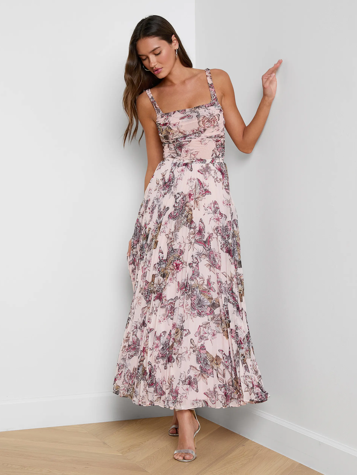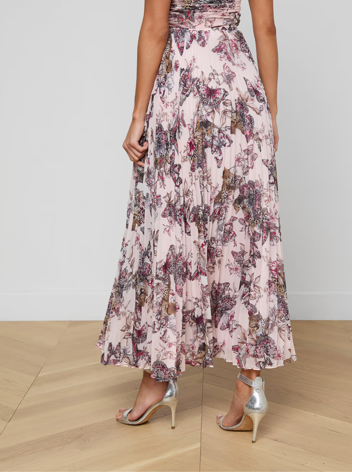 Torin Pleated Maxi Skirt Light Nectar Pink Small Butterfly Jungle