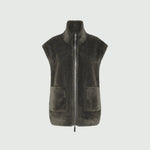 - Gilet featuring a velvet-finish jersey side and furry-look fabric side