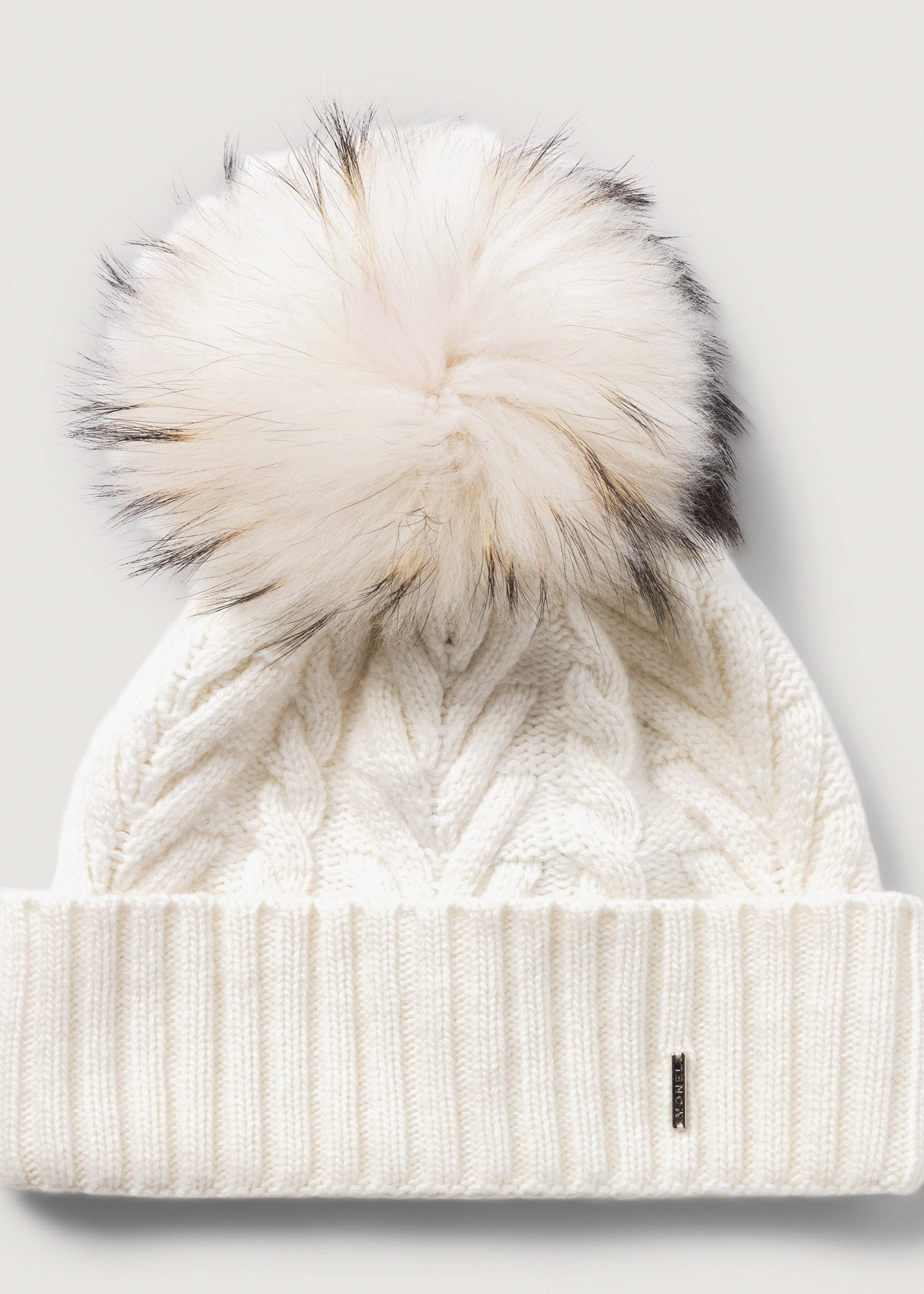 Crafted in Italy from a warm wool blend, the Aspen beanie is knitted with a twisted design and topped with a raccoon-fur pom for an elevated finish.