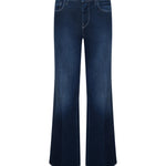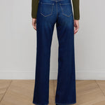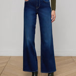 The ultimate sneaker length wide-leg jean. This L’AGENCE bestseller is back in a dark blue wash with slight fading designed to contour the leg for a flattering, lengthening effect.