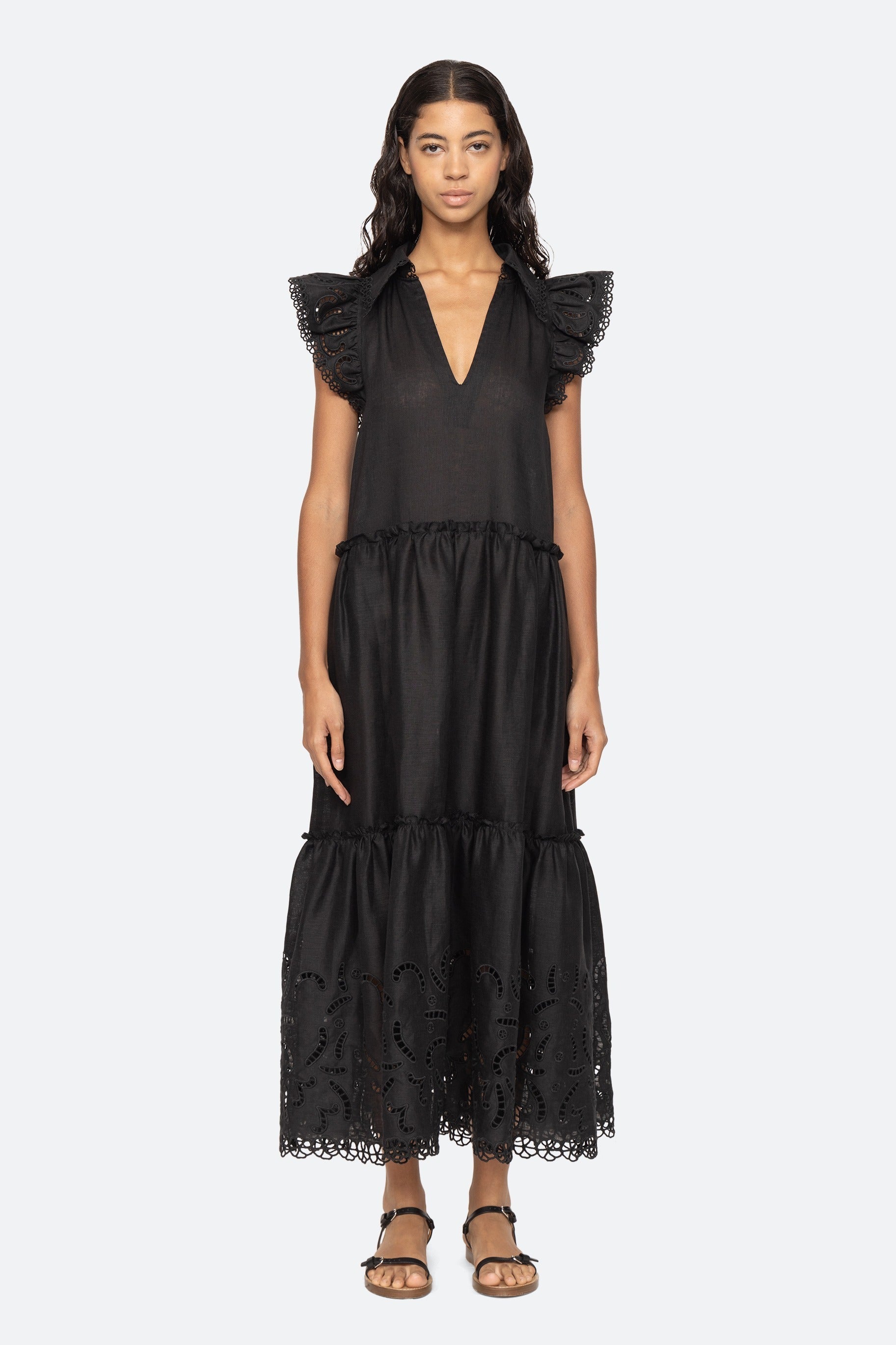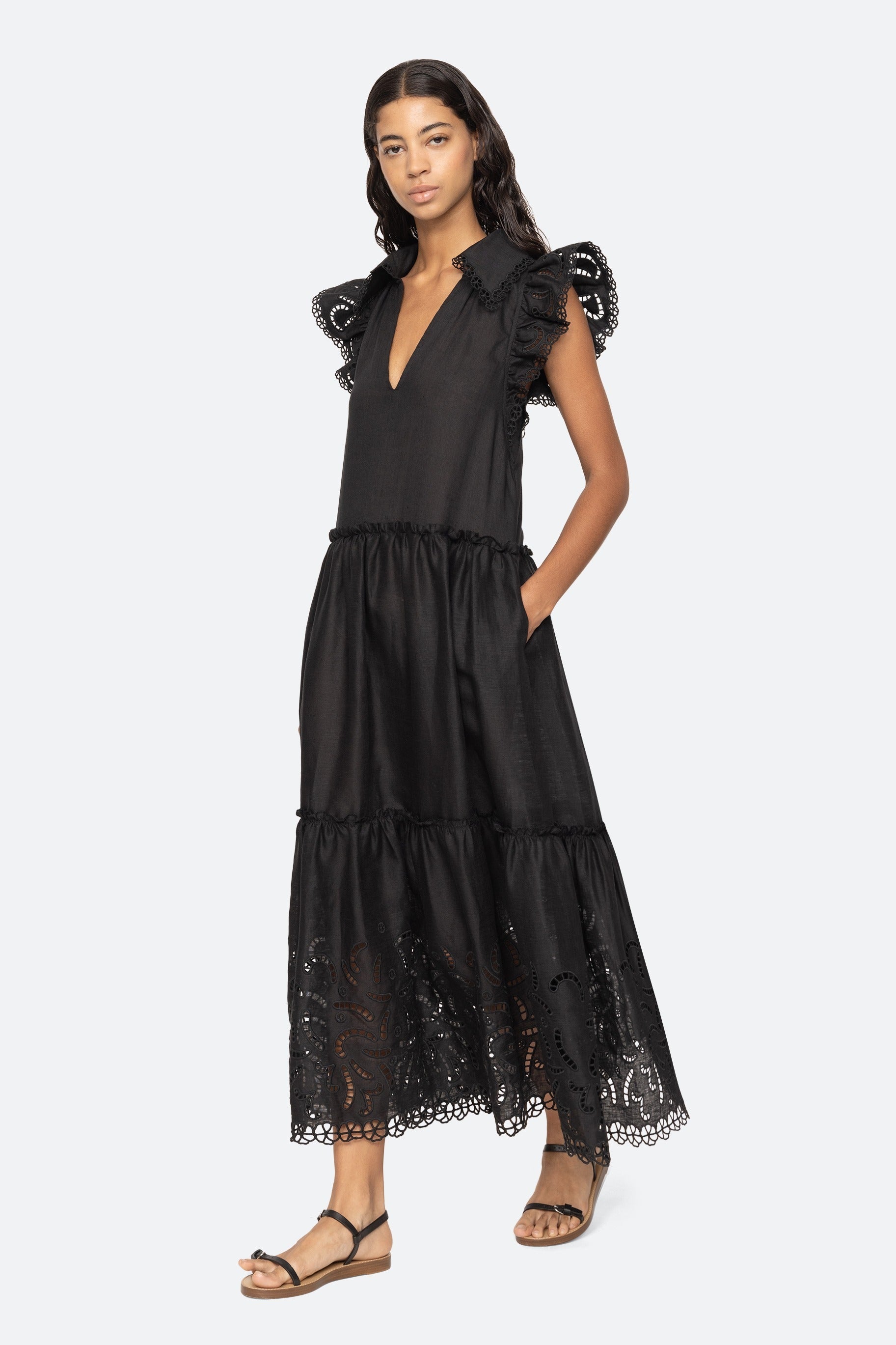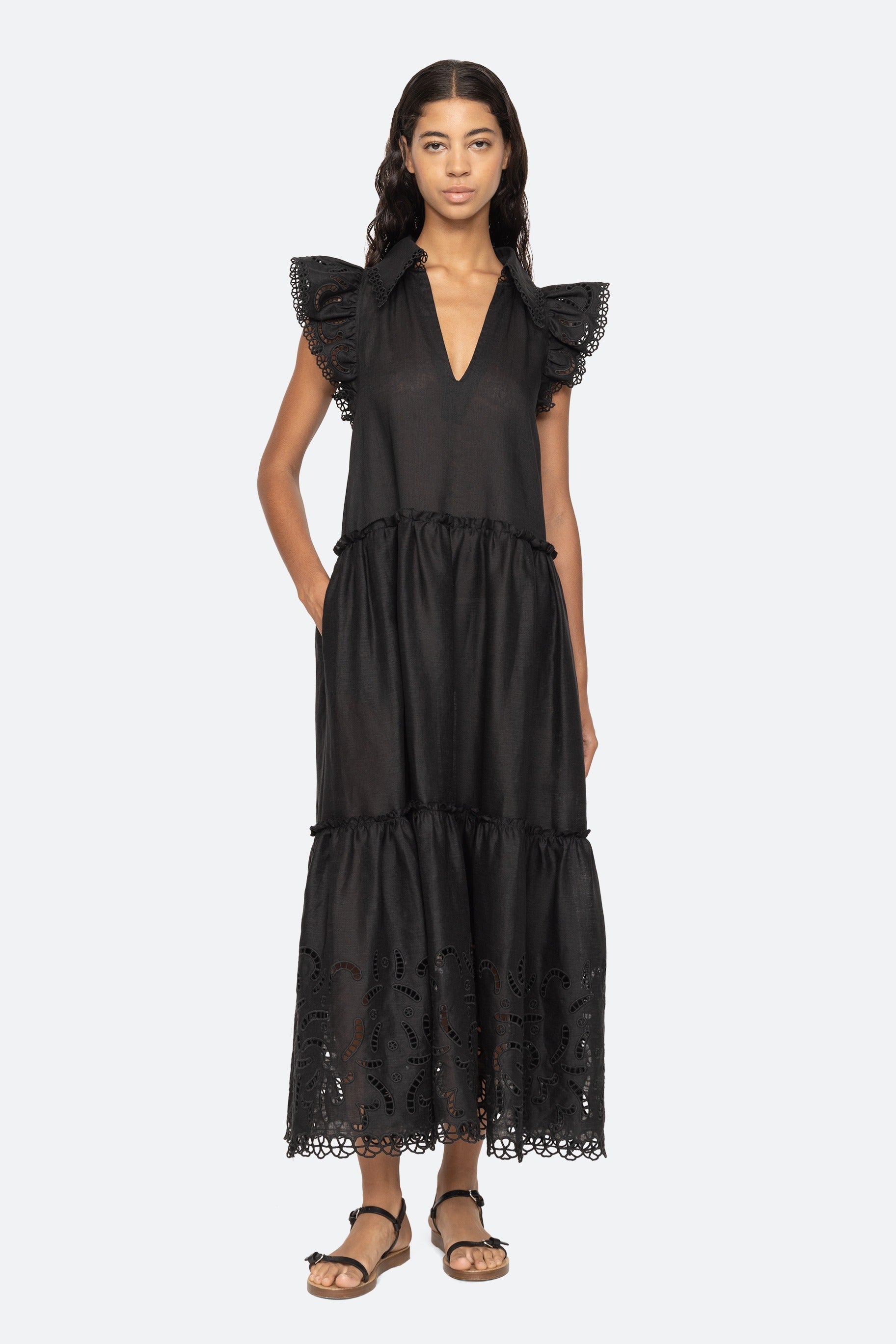 The Marja embroidered dress features flutter sleeves, v-neckline and eyelet detailing. Designed for an easy, relaxed fit.