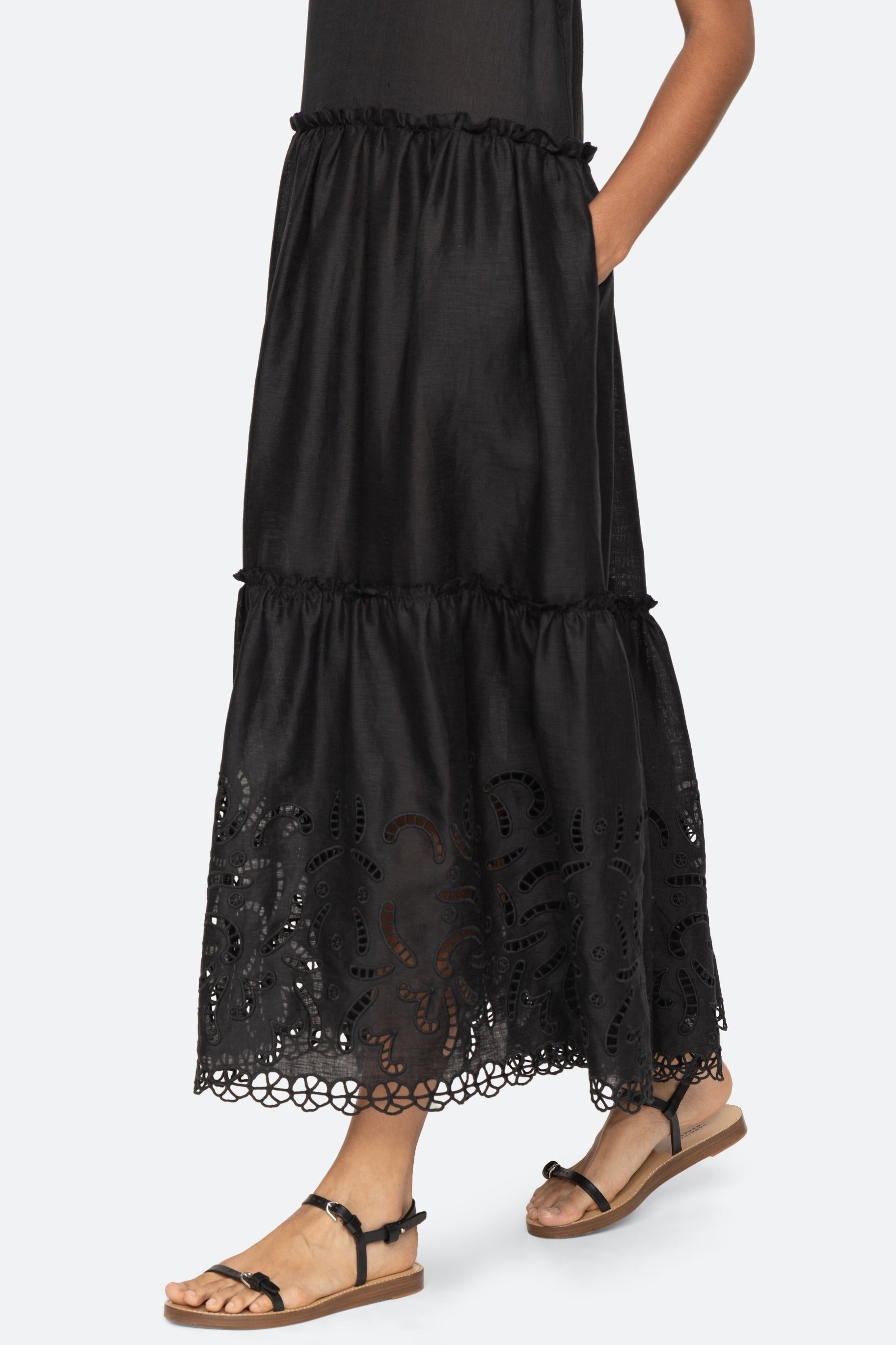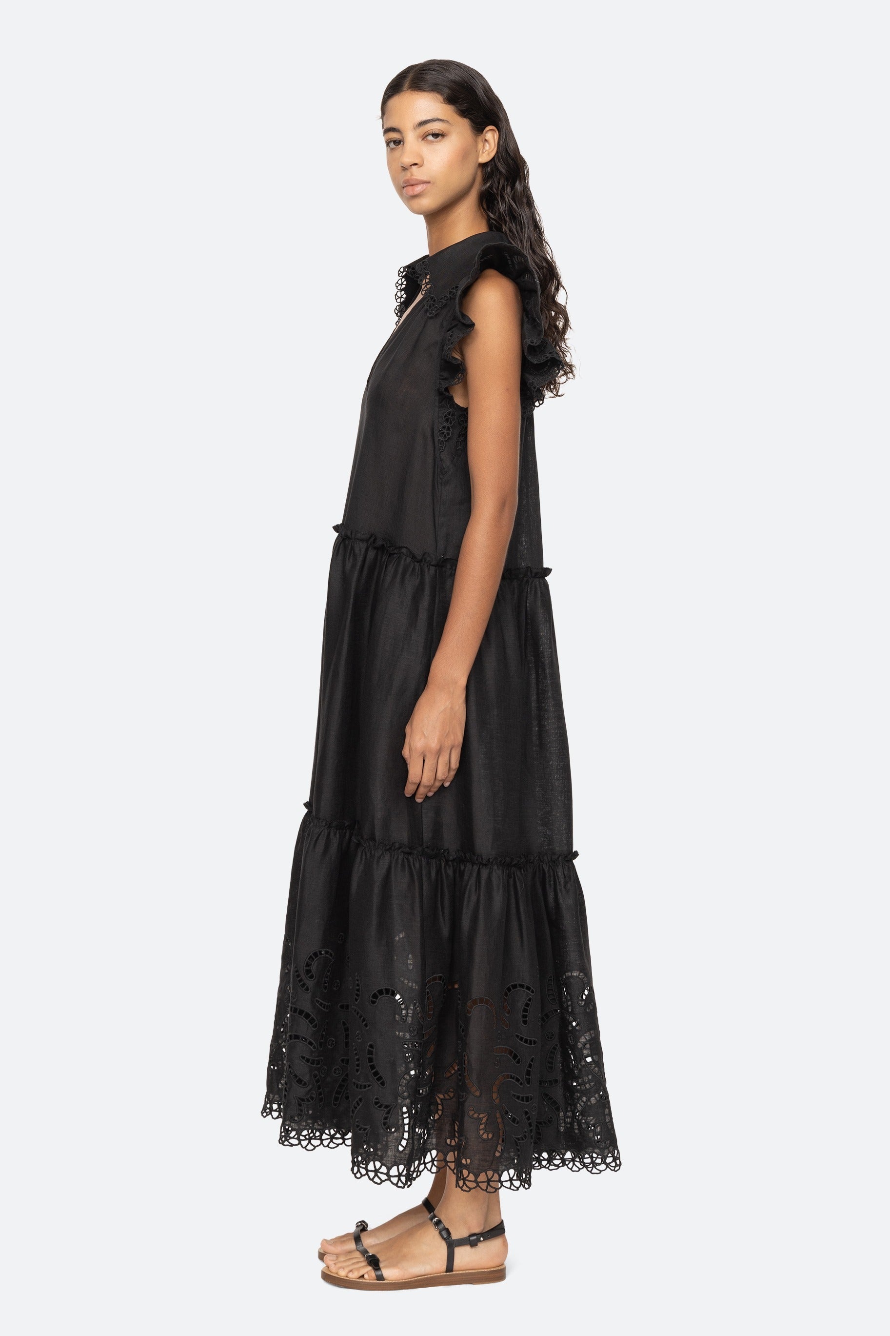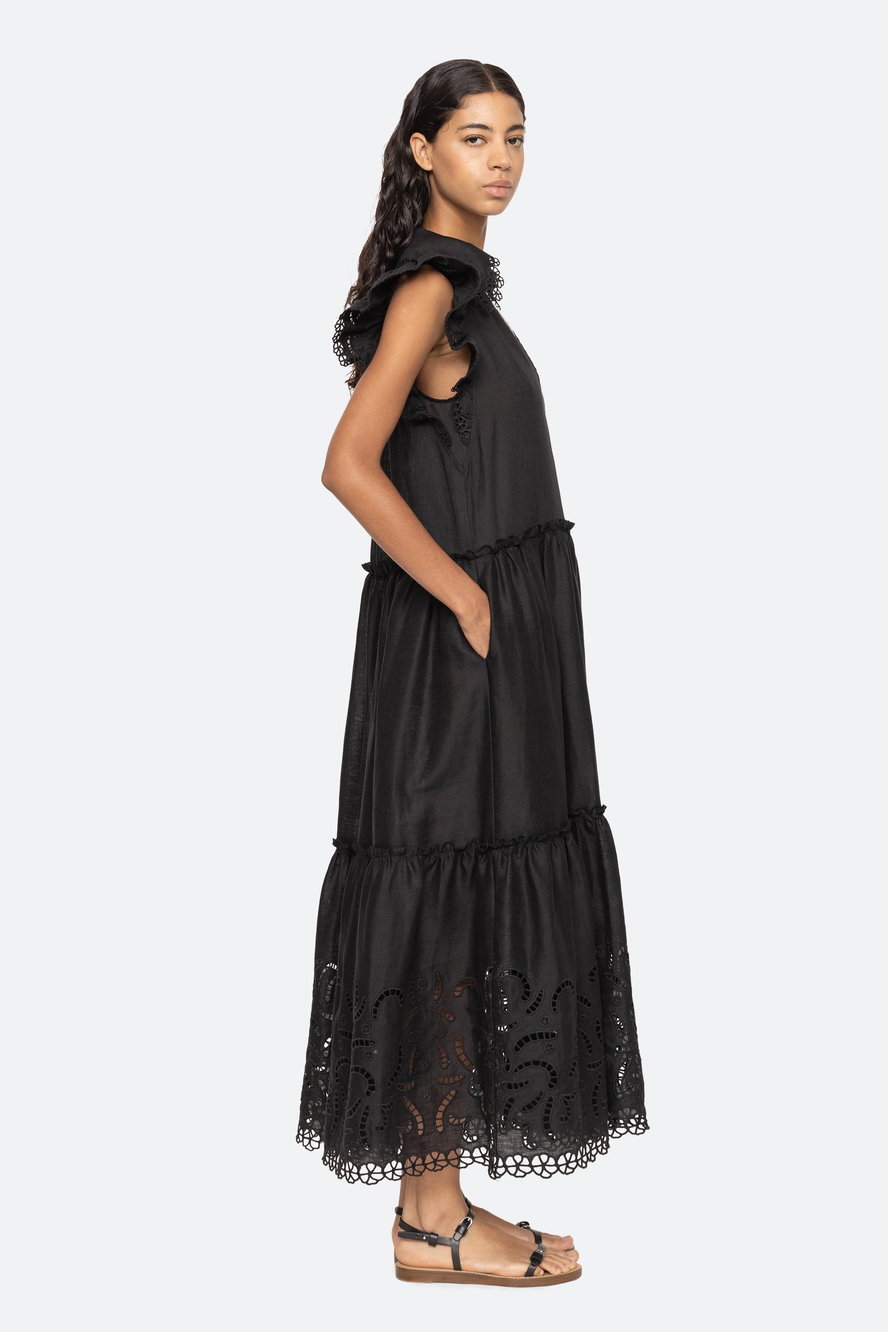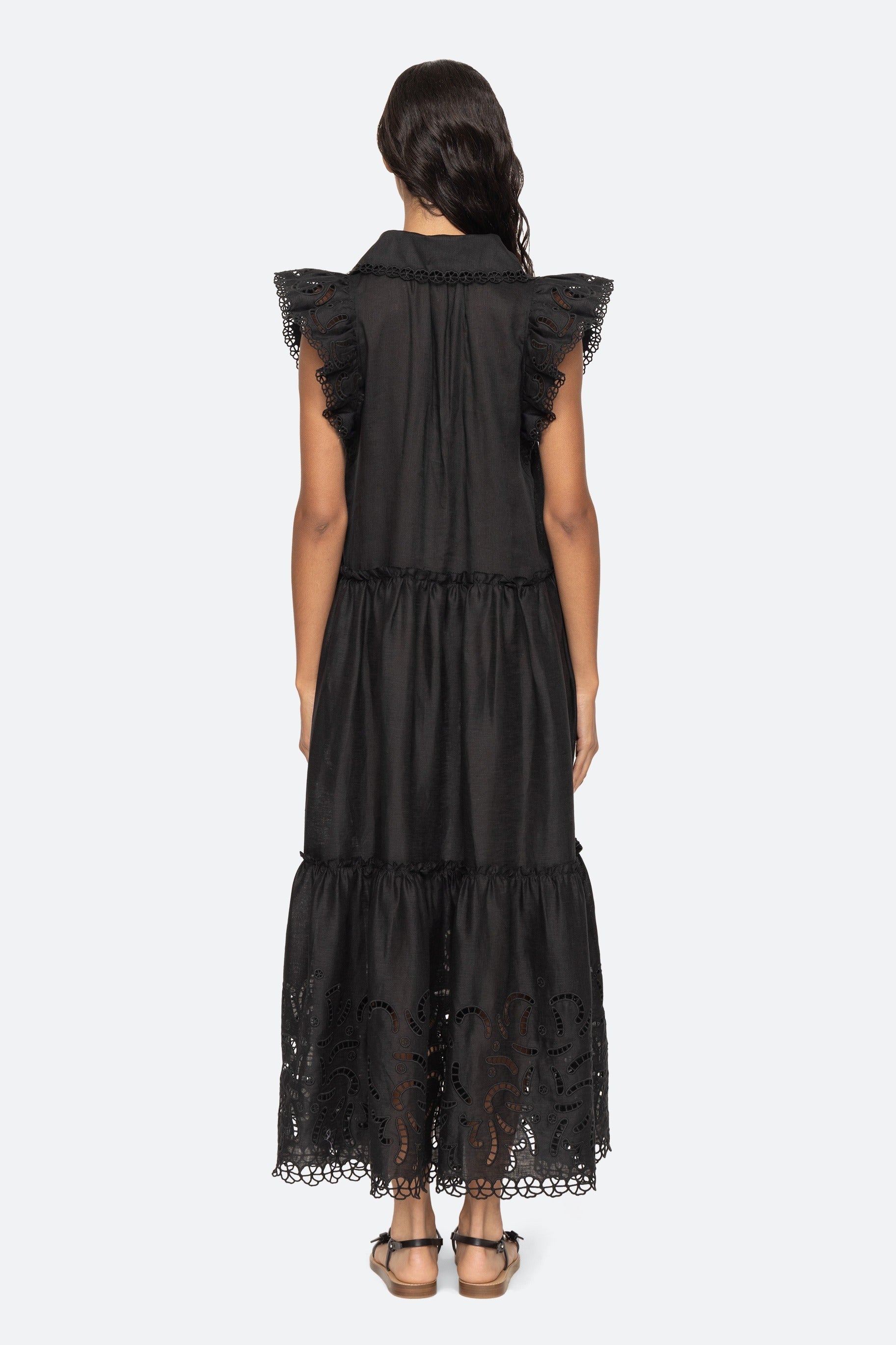 The Marja embroidered dress features flutter sleeves, v-neckline and eyelet detailing. Designed for an easy, relaxed fit.