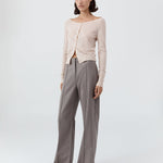 - Bateau neckline, longsleeve, button down placket, ribbed cuff, hem and neckline detail