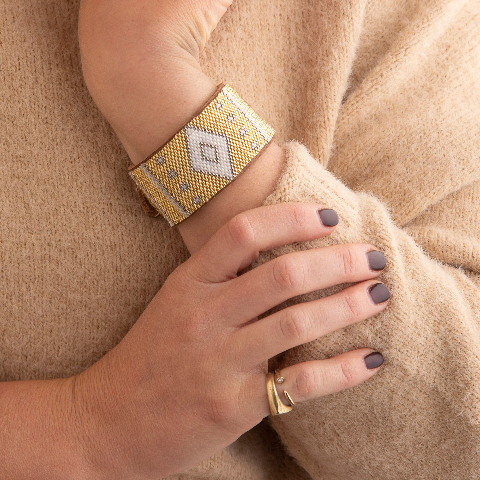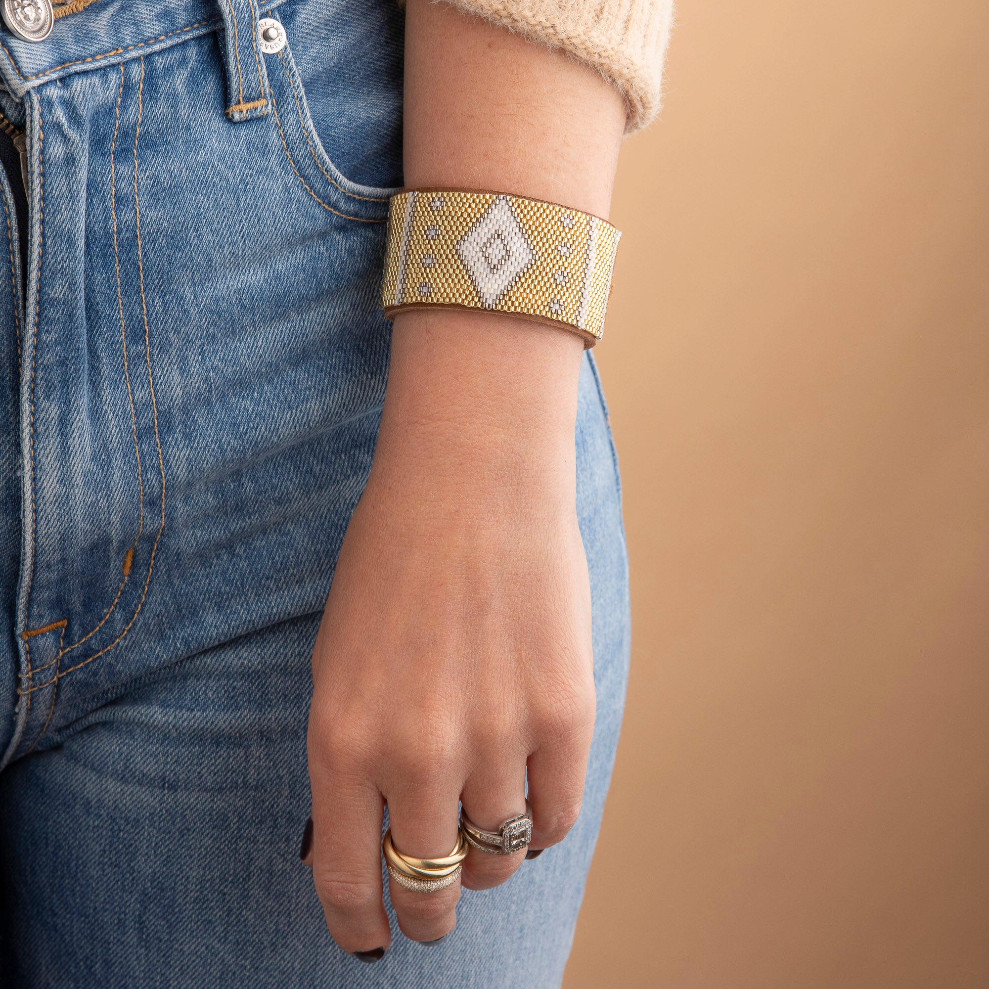 Inspired by the amazing Native American beading work. T&T collaborated on this collection with an amazing artist to help with the beading work. They are handwoven and inlaid onto rich Italian leather. They are adjustable and fit like a dream on the wrist.