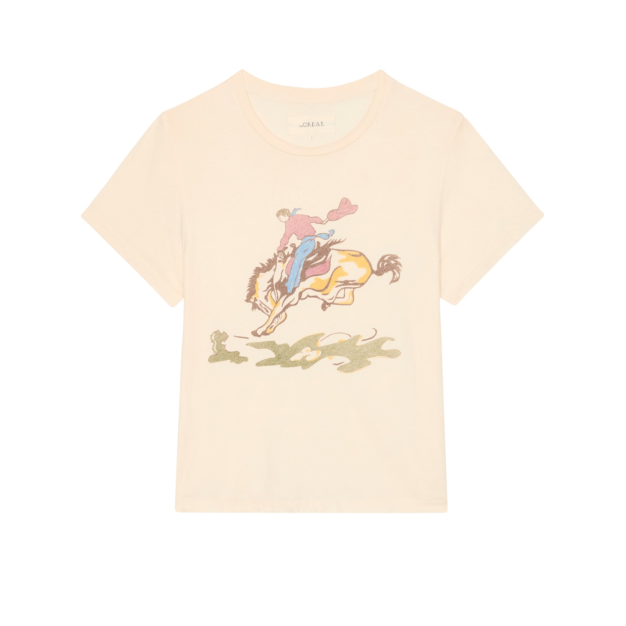 The Little Tee is inspired by a vintage ‘30s men's undershirt with a super-washed and lived-in feel. This tee is a favorite layering piece. It's close to the body fit makes it easy, comfortable, and perfect for wearing by itself or layered under a sweater. This season, it features The Rider Graphic- inspired by a 1950s little boy's graphic tee. Handcrafted locally in Los Angeles, The Great's process ensures beauty and uniqueness—no two pieces are alike.