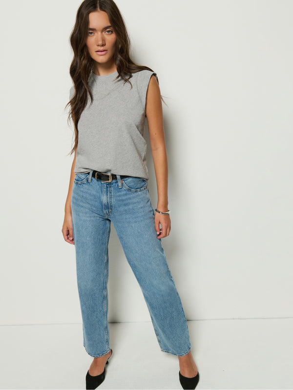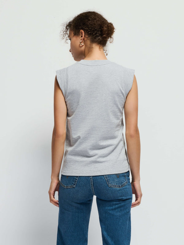 A muscle tank, but make it feminine, with a ribbed, crew neckline and over the shoulder short sleeves.