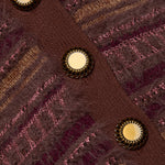 Soft and striking, the Ariadne is woven with a variety of eyelash yarns and mixed stitches for textural dimension. Finished with vintage-inspired buttons.
