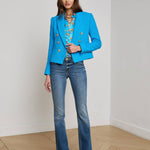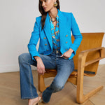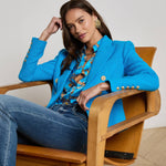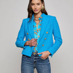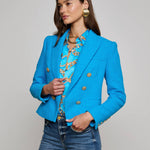 A bestselling open-front Brooke features a flattering tapered fit. This double-breasted blazer is now back in a vivid blue tweed.