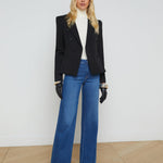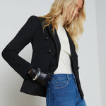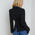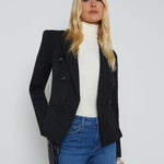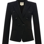 An ultra-flattering double-breasted blazer featuring a defined, cinched waist.