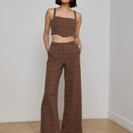 Pilar Wide Leg Pant Dark Brown Multi Houndstooth