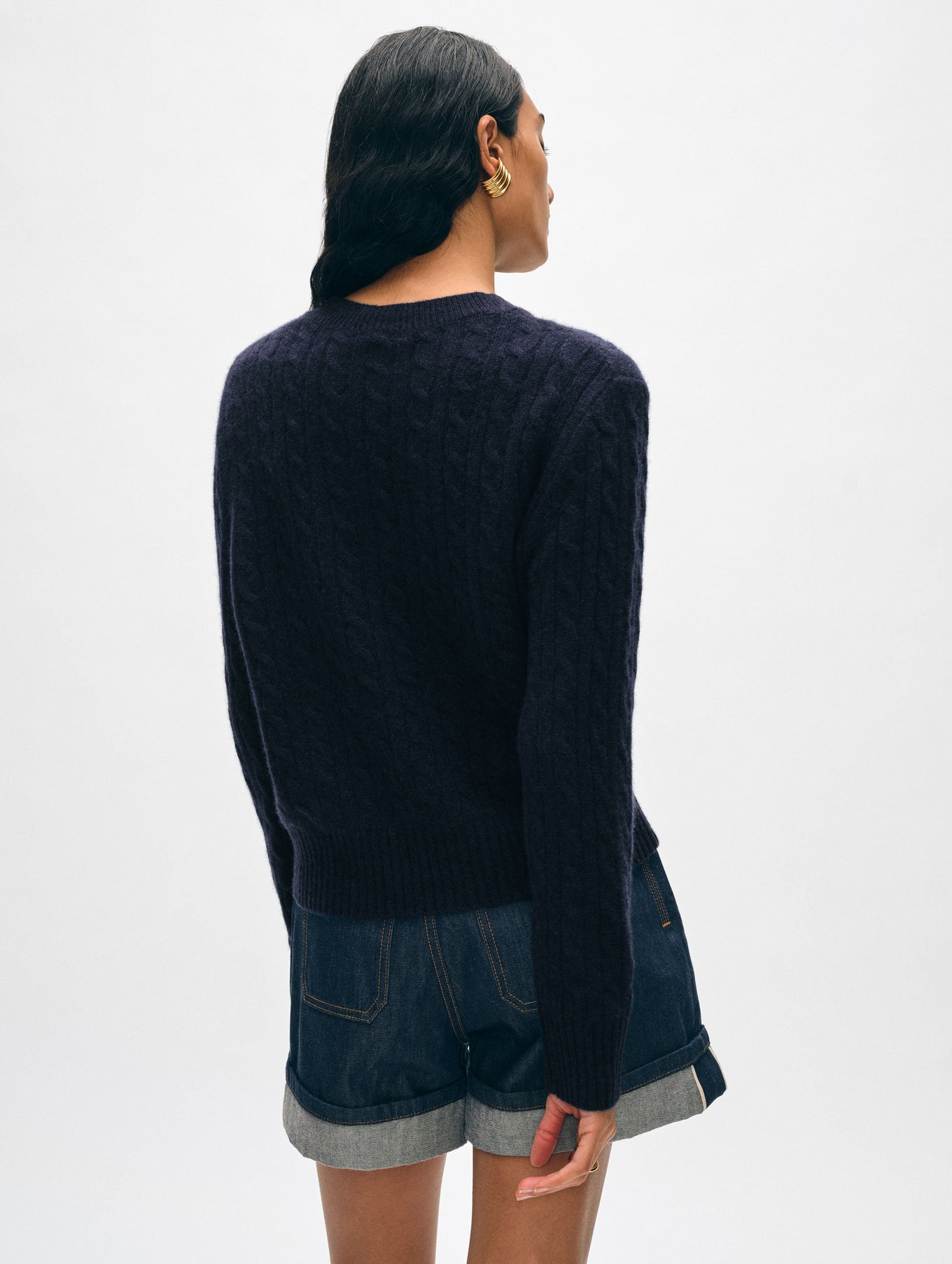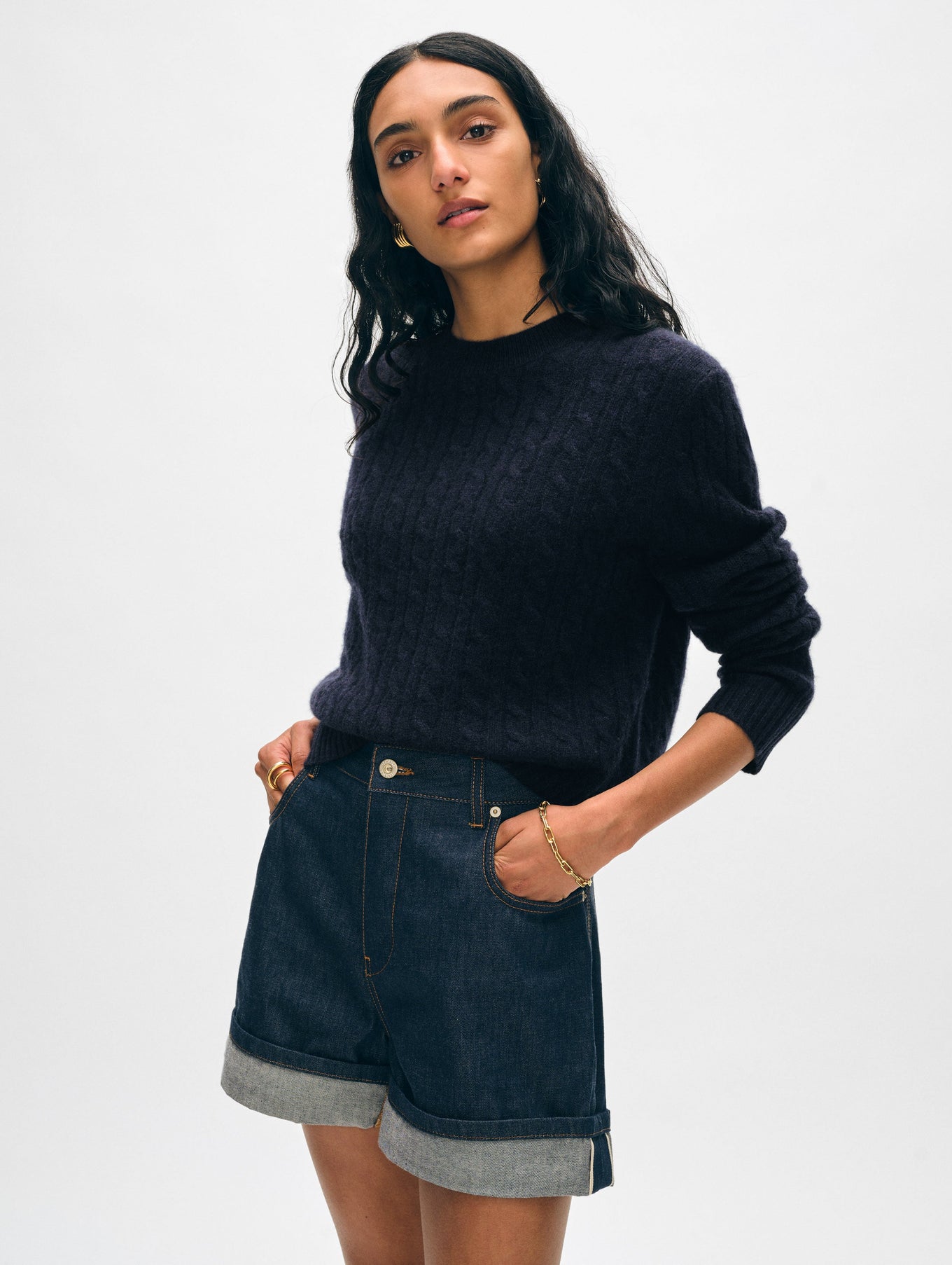 A cashmere crewneck is a wardrobe staple, and this one is made from featherweight cashmere that’s perfect for all seasons. It’s designed with a cable motif in a relaxed fit for a classic look that will never go out of style. In the summer, wear yours over a swimsuit after a day at the pool. And of course, cozy up in the fall by pairing with your favorite denim.