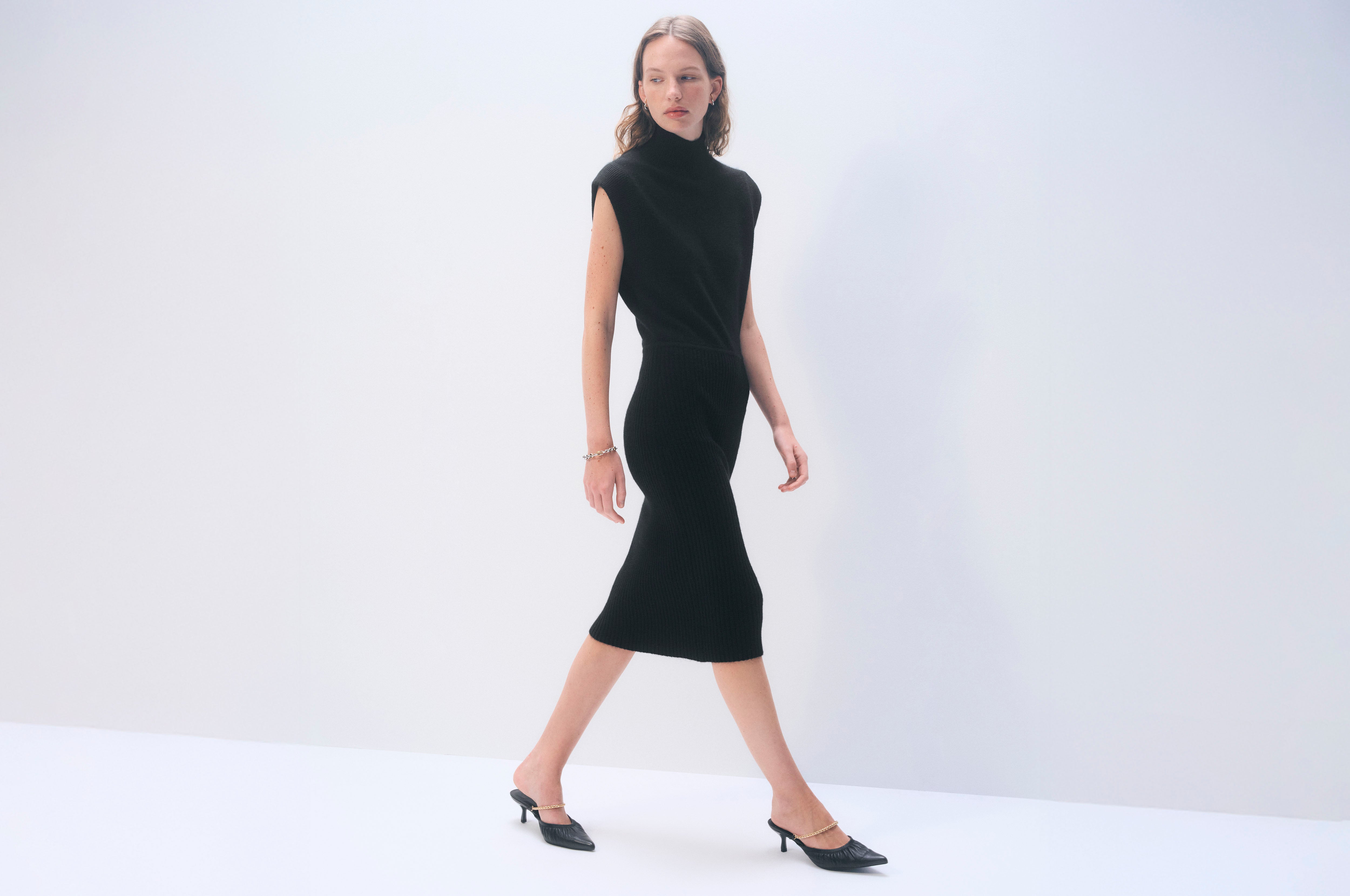 A classic throw-on-and-go dress for every occasion. This contemporary statement piece features a flattering mockneck, wide shoulders, and a sculpted ribbed skirt that defines the silhouette. Knit from our signature cashmere, it's finished with clean lines and an irresistibly soft texture you'll wear on repeat.