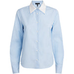 Solid choice. A forever staple, reimagined in lightweight cotton poplin with a slim profile that's perfectly tailored from shoulder to hem. It's the perfect button-up shirt to wear under a blazer. But looks just as sleek and chic by itself.