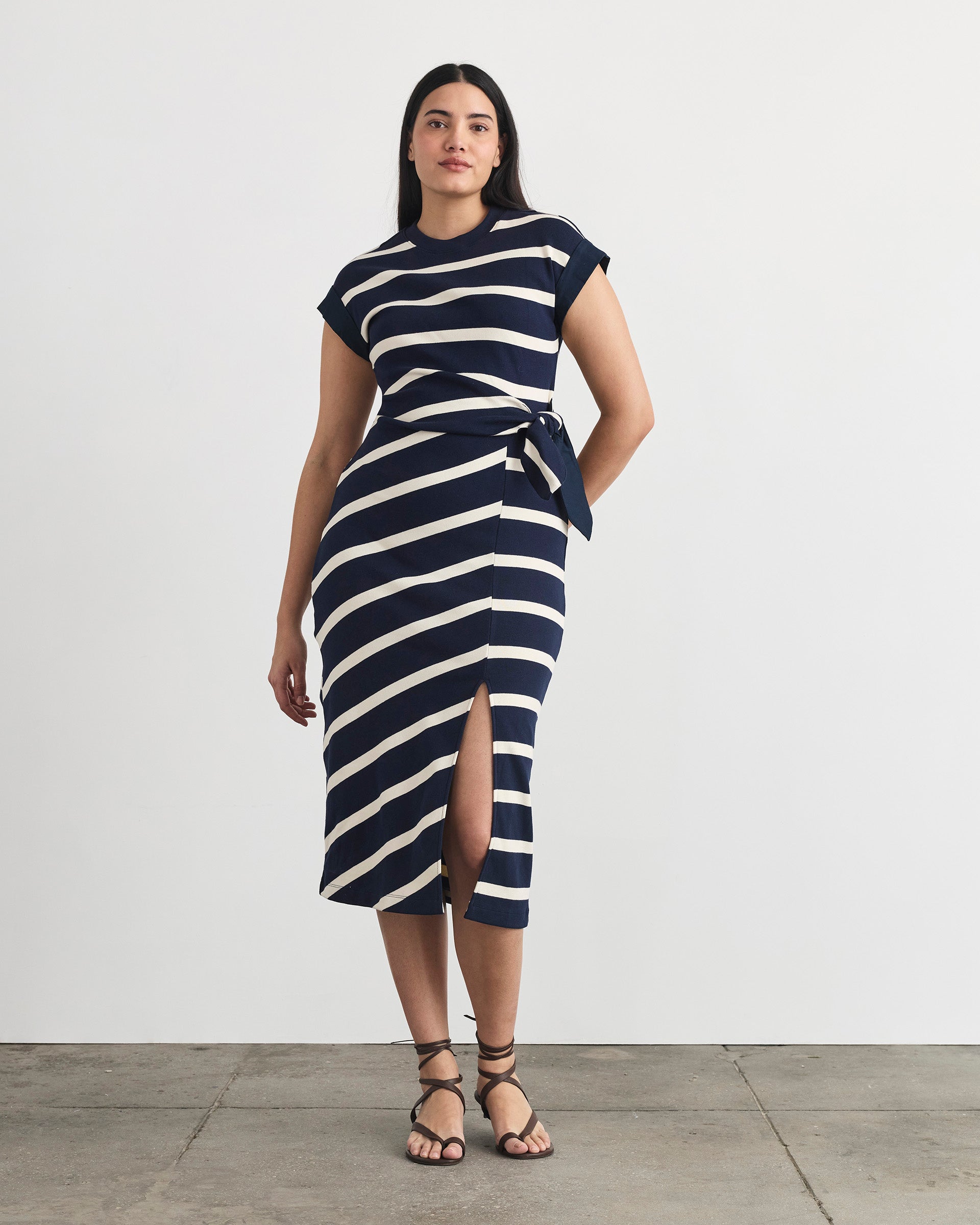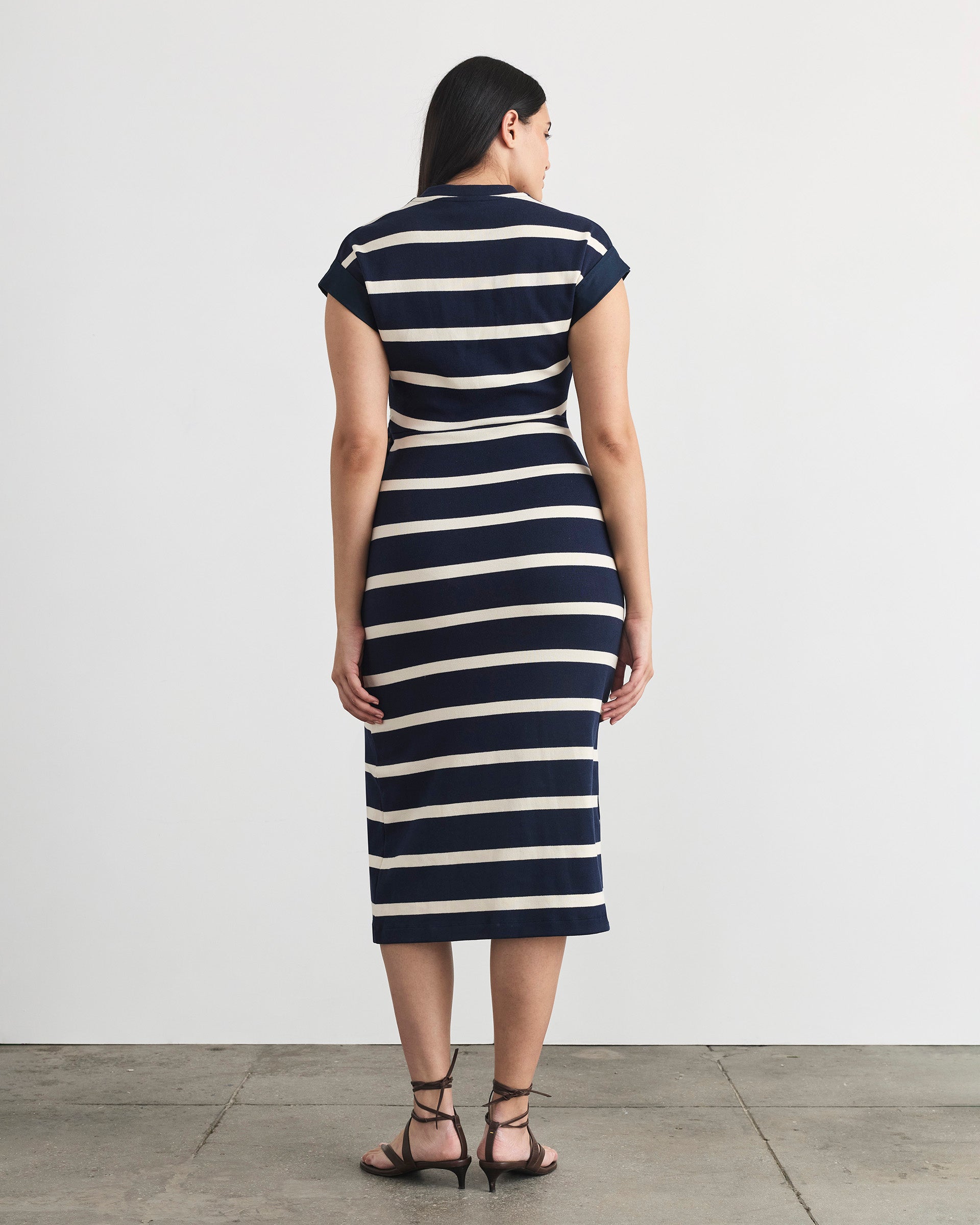 Designed in an organic rugby stripe, the Kovi Dress is a versatile midi that is a staple in every closet.