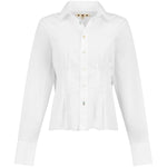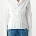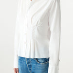 A decidedly feminine take on the classic poplin shirt, with waist pleats and a cinched back for a flattering silhouette.