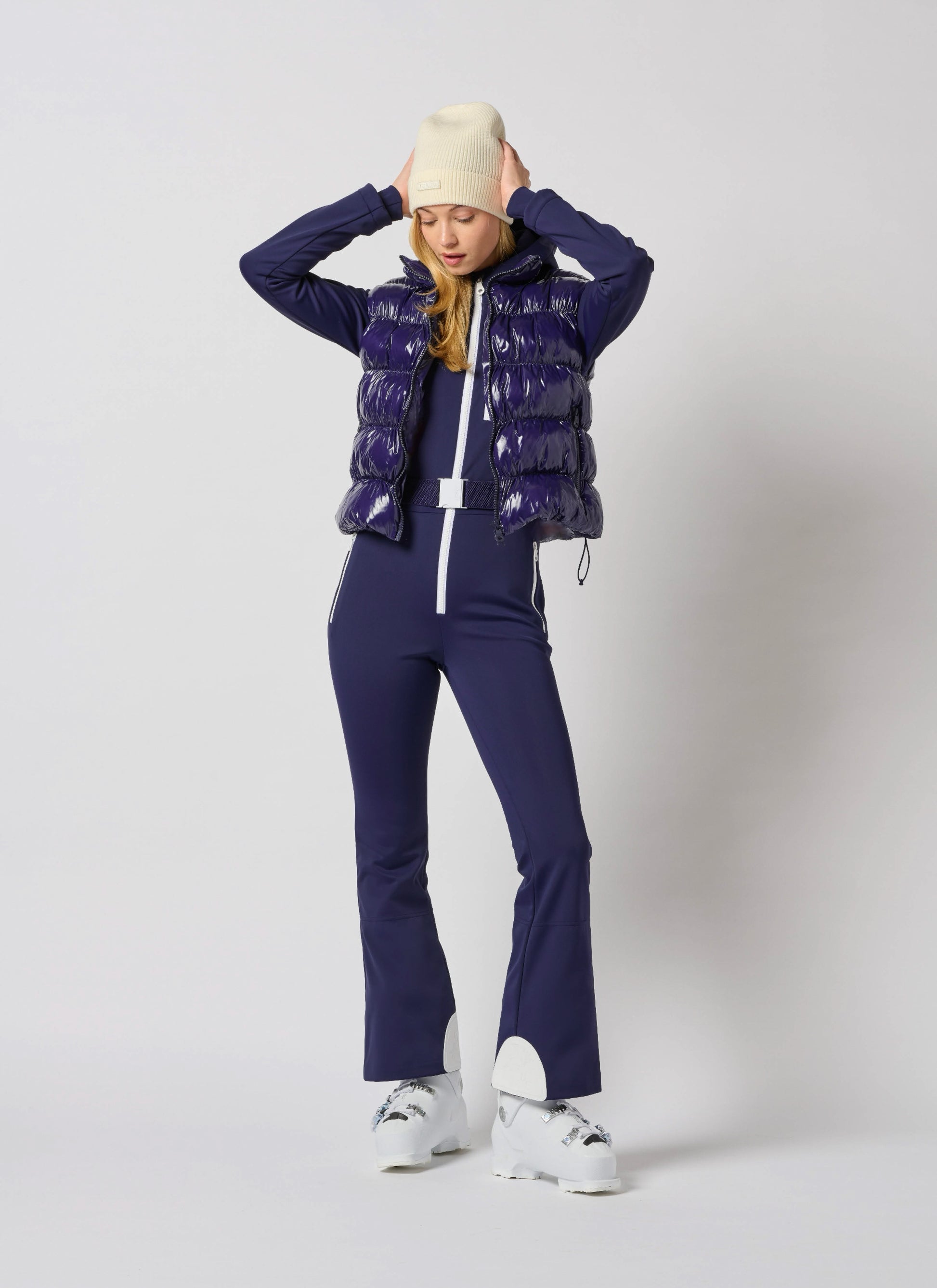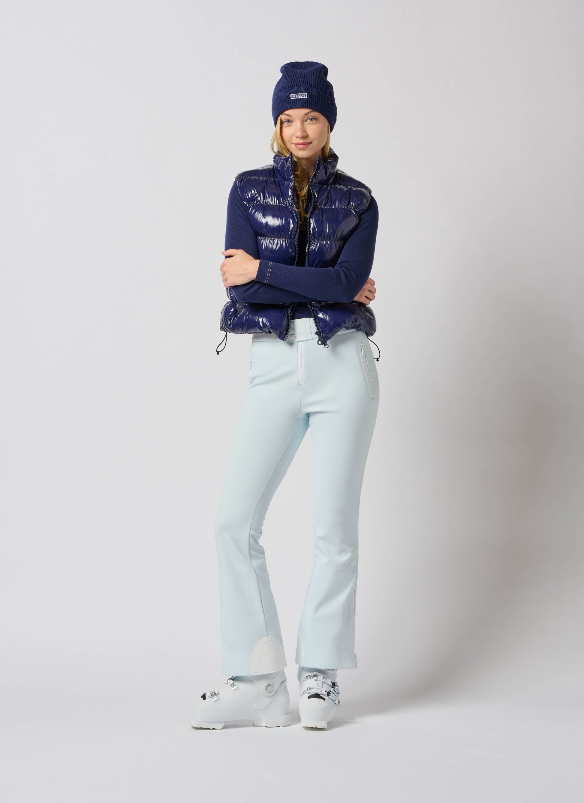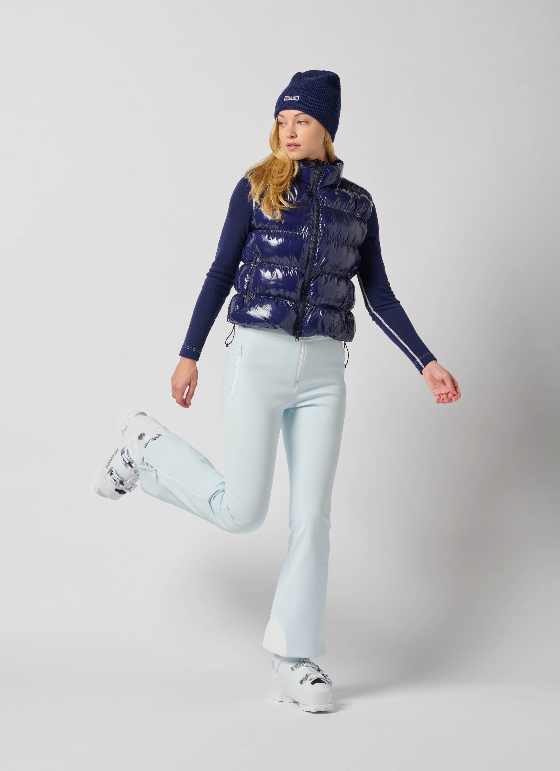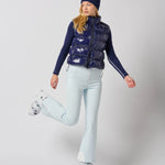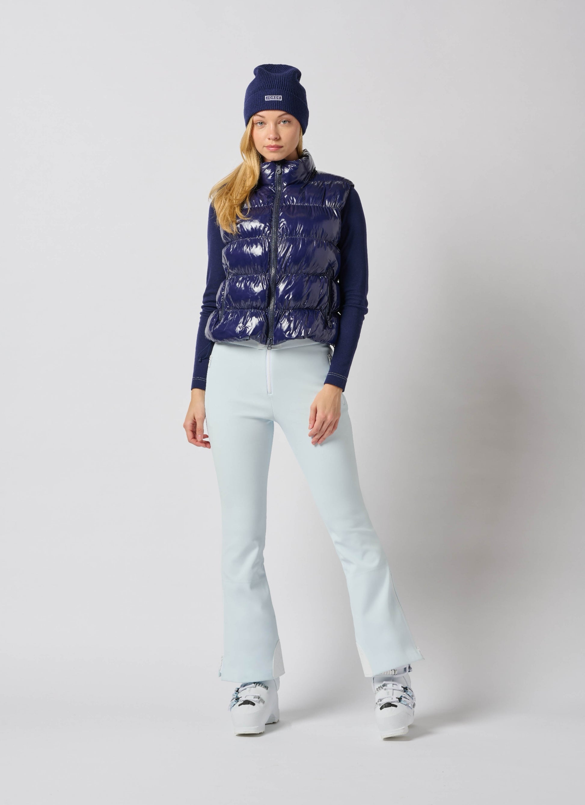 Designed for slope to street style, the Nell vest blends modern après ski fashion with cozy, lightweight warmth. Featuring a cropped cut and subtly tailored shape, the vest layers seamlessly over baselayers, sweaters, and especially the Minka ski suit.