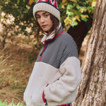Made from super soft and lofty plush fleece, both bodies feature dropped shoulders, stretch binding around the edges, a tall plush collar, and cozy welt pockets. The signature print-mix contrast is reminiscent of vintage camping gear.